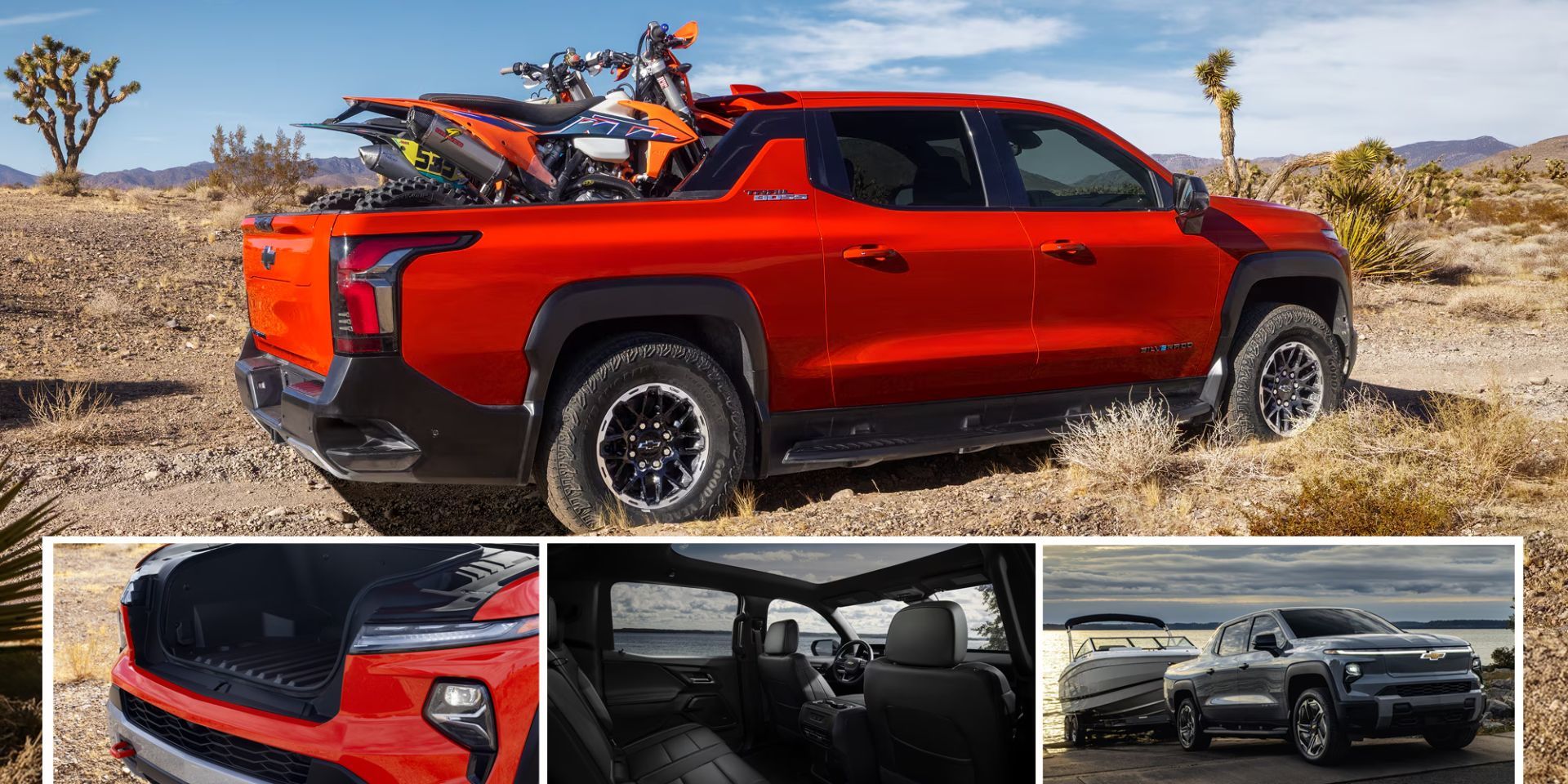 Côté performance, la version Extended Range permet de remorquer jusqu'à 12 500 lb (environ 5 670 kg). La charge utile va jusqu'à 2 100 lb. Le Trail Boss avec batterie Max Range développe jusqu'à 725 chevaux et 775 lb-pi de couple. Parfait pour les travaux lourds ou les aventures en nature.
